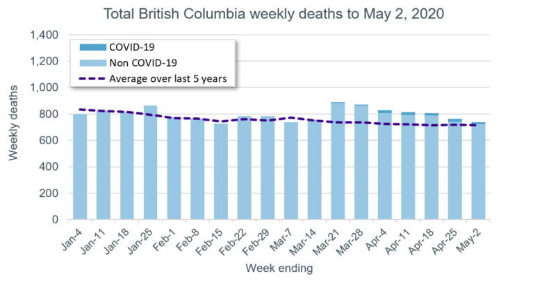 So far in 2020, has COVID-19 increased the overall level of mortality in Canada?