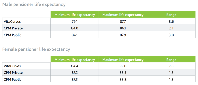 2 The lower and upper CPM life expectancies have been determined based on the CPM lowest and highest pension size adjustments.