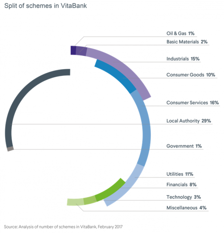 The Club Vita data bank contains data from over 235 different pension schemes, across a wide range of occupations and industry sectors. The chart below shows that no one sector dominates.