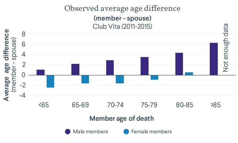 *Note that the age difference of a member and their spouse does not contribute to this average if the spouse dies before the member.