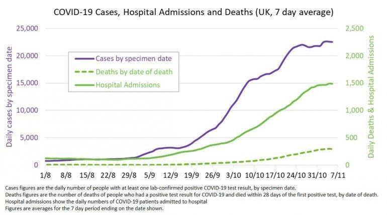 COVID-19 cases in the UK have shown some signs of levelling off recently, although some areas have seen better figures than others. Numbers for hospitalisations of COVID-19 patients have also been rising recently. Sadly, it is inevitable that some proportion of these new cases will require hospital treatment, and a proportion of those will tragically die. Therefore concerns remain that we could see many more COVID-19 linked deaths in the weeks ahead.