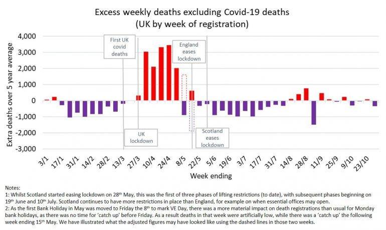 Given the statistical ‘noise’ in weekly death figures, caution is required when looking at this data over relatively short periods. It will, however, be important to monitor how these figures evolve over the next few months, where deaths would be expected to increase in any given year over the winter.