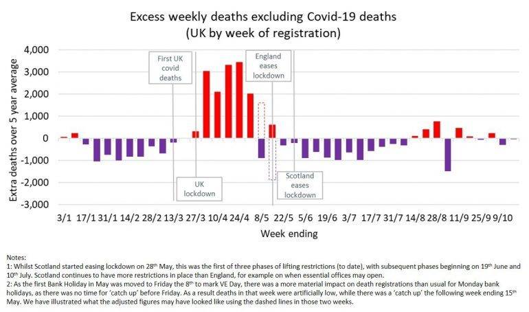 Given the statistical ‘noise’ in weekly death figures, caution is required when looking at this data over short periods. It will, however, be important to monitor how these figures evolve as we head into the winter months, where deaths would be expected to increase in any given year.