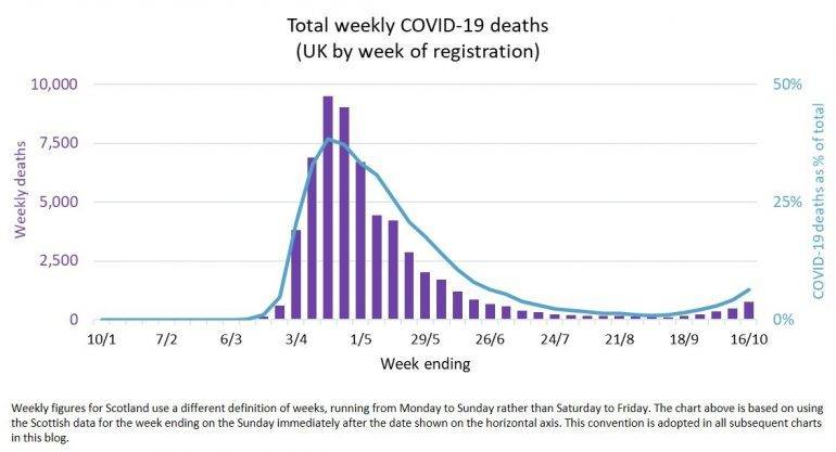 The latest statistics from the ONS include detailed breakdowns of deaths registered in England and Wales up to 16th October. In particular, they identify deaths where there is any mention of COVID-19 on the death certificate. Combining this information with similar data from the corresponding statistical bodies in Scotland and Northern Ireland, we can examine emerging patterns in the data.