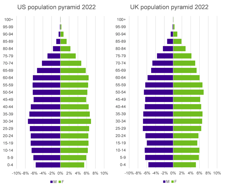 1 c9% of the UK’s population was over 75 in 2022, compared to c7% in the US.